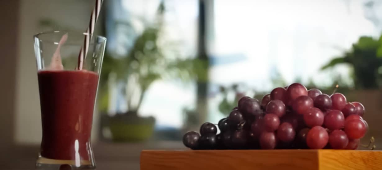 - הכניסו את כל הרכיבים לבלנדר חזק בסדר הבא: תמר מג'הול, גוג'י ברי, רכז רימונים, ענבים, אוכמניות כחולות ופולי קקאו RAW.