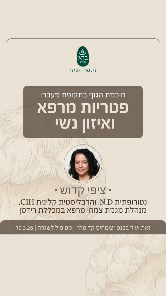 ציפי קדוש תציע הסתכלות אחרת על גיל המעבר – לא כ”בעיה”, אלא כתהליך של ארגון מחדש בגוף. שילוב של מחקר, קליניקה ופתרונות טבעיים שאינם מחקים הורמונים.