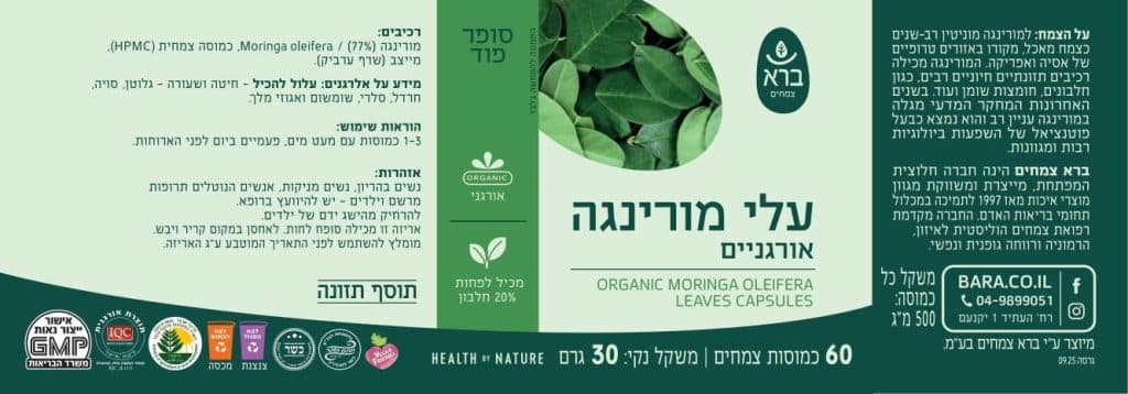 כמוסות עלי מורינגה אורגניים | Organic Moringa Oleifera Leaves Capsules
