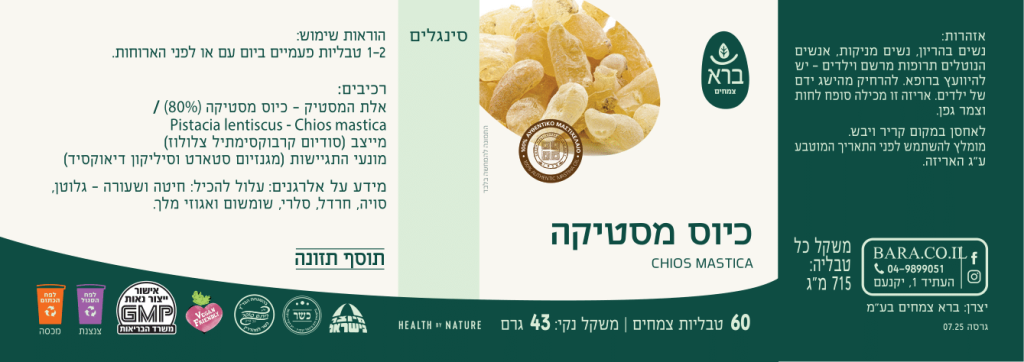 • מיוצר משרף אלת המסטיק תת-מין כיוס המקורי