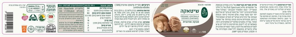 אבקת פטריית שיטאקה אורגנית, מספקטרום מלא – FULL SPECTRUM המכילה את כל חלקי הפטרייה, התפטיר, גוף הפרי, הנבגים והתרכובת החוץ תאית שהפטרייה מייצרת ומפרישה מחוץ לתא לסביבתה, לטווח פעילות אופטימלי .