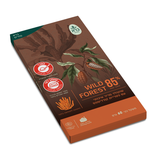 חטיף שוקולד מריר ייחודי המשלב נוכחות עדינה אך עוצמתית של פטריית קורדיספס,