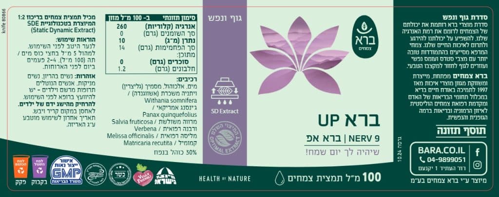חיי היומיום שלנו עלולים להיות עמוסים ומלאי מתחים, המשפיעים על החיוניות שלנו ועל מצב הרוח. ברא אפ הינה פורמולת צמחי מרפא* אשר על פי הרפואה המסורתית נחשבים לבעלי איכויות תומכות, 'משקיטות' ומרוממות המתאימה לתקופות שקשה יותר, בין אם ארוכות או קצרות.
