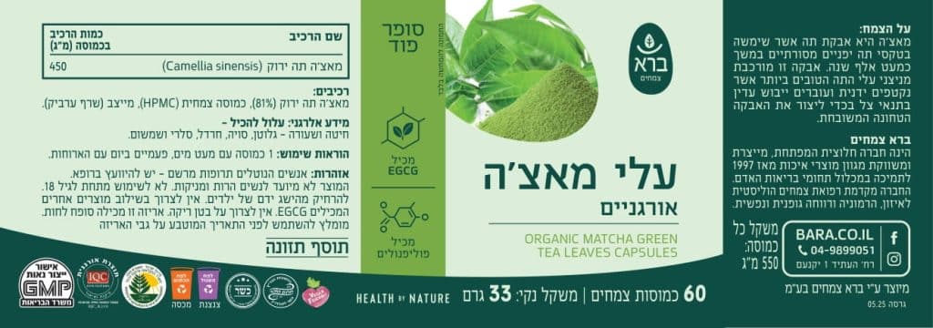 כמוסות עלי מאצ'ה אורגנית | ORGANIC MATCHA GREEN TEA LEAVES CAPSULES